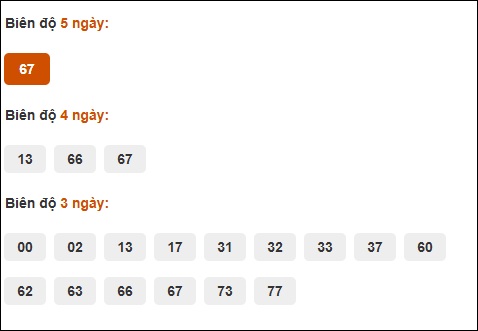 Đuôi 3: 6 ngày, Đuôi 6: 5 ngày, Đuôi 4: 4 ngày, Đuôi 1: 3 ngày, Đuôi 7: 2 ngày