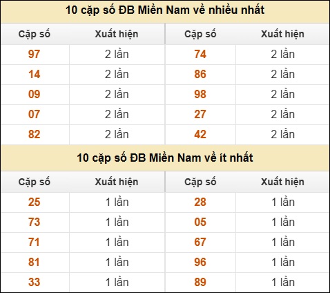⚡ 10 cặp số ĐB Miền Nam về nhiều nhất/ ít nhất tính đến ngày 9/10/2025: