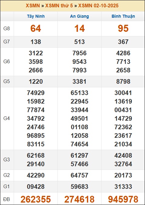 Bình luận kết quả kỳ trước, từ đó nhận định xổ số miền Nam 9/10/2025 hôm nay gồm 3 tỉnh: Tây Ninh, An Giang, Bình Thuận.