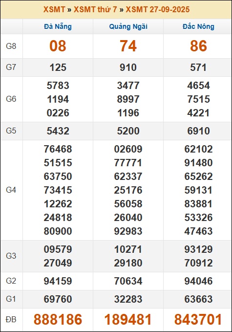 Thống kê XSMT 04/10/2025 - Phân tích xổ số Miền Trung ngày 4 tháng 10 năm 2025 hôm nay Thứ 7 gồm ba đài: Đà Nẵng - Quảng Ngãi - Đắc Nông HIỆU QUẢ nhất. Cao thủ nhận định KQXSMT 4/10/2025 miễn phí, chi tiết nhất.
