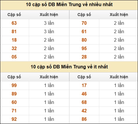 ⚡ 10 cặp số ĐB XSMT về nhiều nhất/ ít nhất tính dến ngày 4/10/2025: