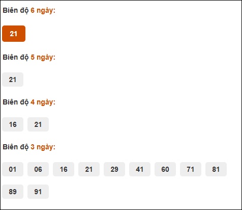 Đuôi 7: 7 ngày, Đuôi 3: 6 ngày, Đuôi 4: 4 ngày, Đuôi 8: 3 ngày, Đuôi 9: 3 ngày