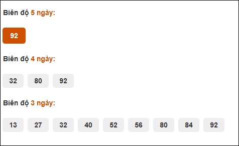 Đuôi 2: 29 ngày, Đuôi 8: 6 ngày, Đuôi 4: 5 ngày, Đuôi 3: 3 ngày, Đuôi 7: 3 ngày