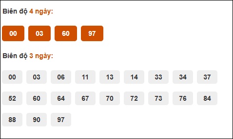 Đuôi 2: 13 ngày, Đuôi 0: 11 ngày, Đuôi 5: 9 ngày, Đuôi 4: 3 ngày, Đuôi 7: 3 ngày