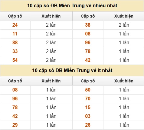 ⚡ 10 cặp số ĐB XSMT về nhiều nhất/ ít nhất tính dến ngày 07/10/2025: