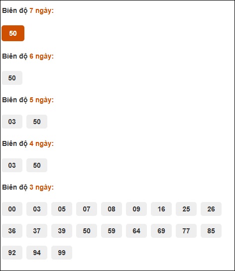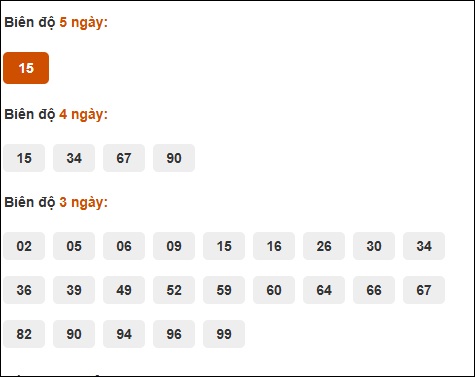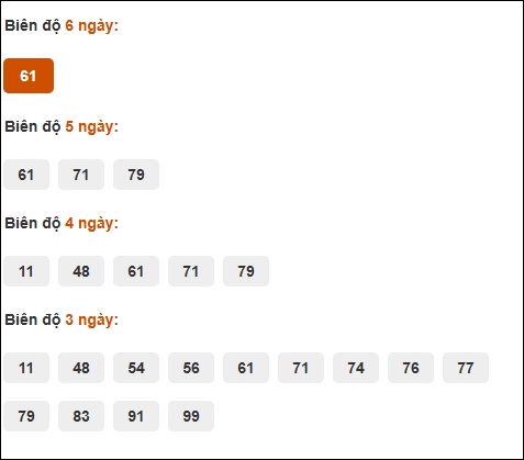 Đuôi 1: 10 ngày, Đuôi 9: 4 ngày, Đuôi 2: 3 ngày, Đuôi 8: 3 ngày, Đuôi 6: 2 ngày