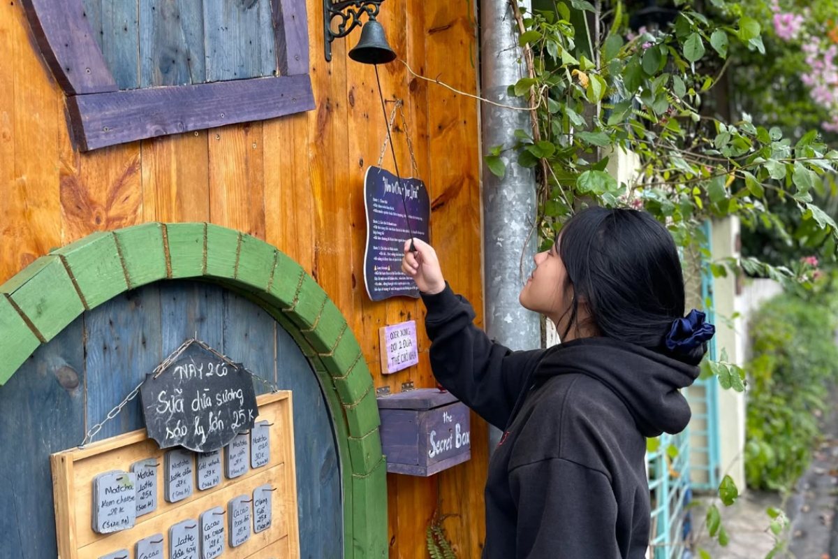 Tiếp theo, họ rung chuông để “đánh thức” người trong bóng tối và nhận lại một thẻ chờ. Khi thẻ rung, tín hiệu báo món đã sẵn sàng, ô cửa sẽ mở ra cùng làn khói mờ ảo – tạo cảm giác như đang bước vào thế giới phép thuật.