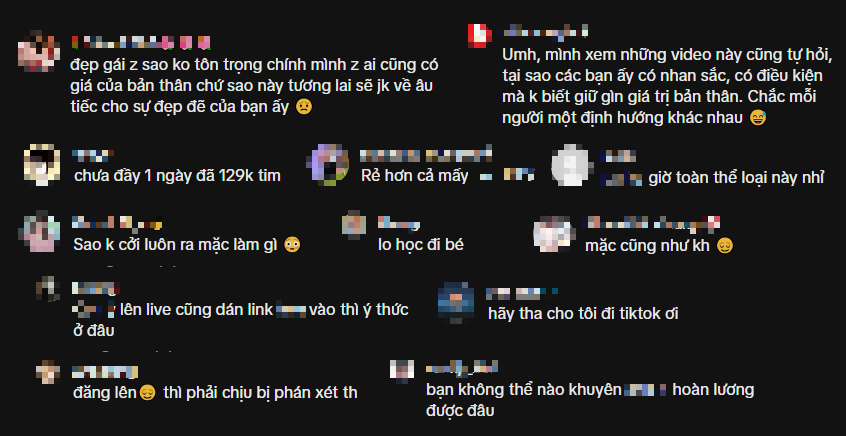 Không ít cư dân mạng cho rằng Lanhxinhyeu đang dựa vào tranh cãi để hút tương tác, bất chấp hình ảnh cá nhân bị ảnh hưởng. Một số ý kiến khác cho rằng sự táo bạo của cô đã đi quá xa, không còn là “gợi cảm thẩm mỹ” mà đang nghiêng sang phản cảm, gây khó chịu và không phù hợp với môi trường mạng xã hội có nhiều người trẻ theo dõi.