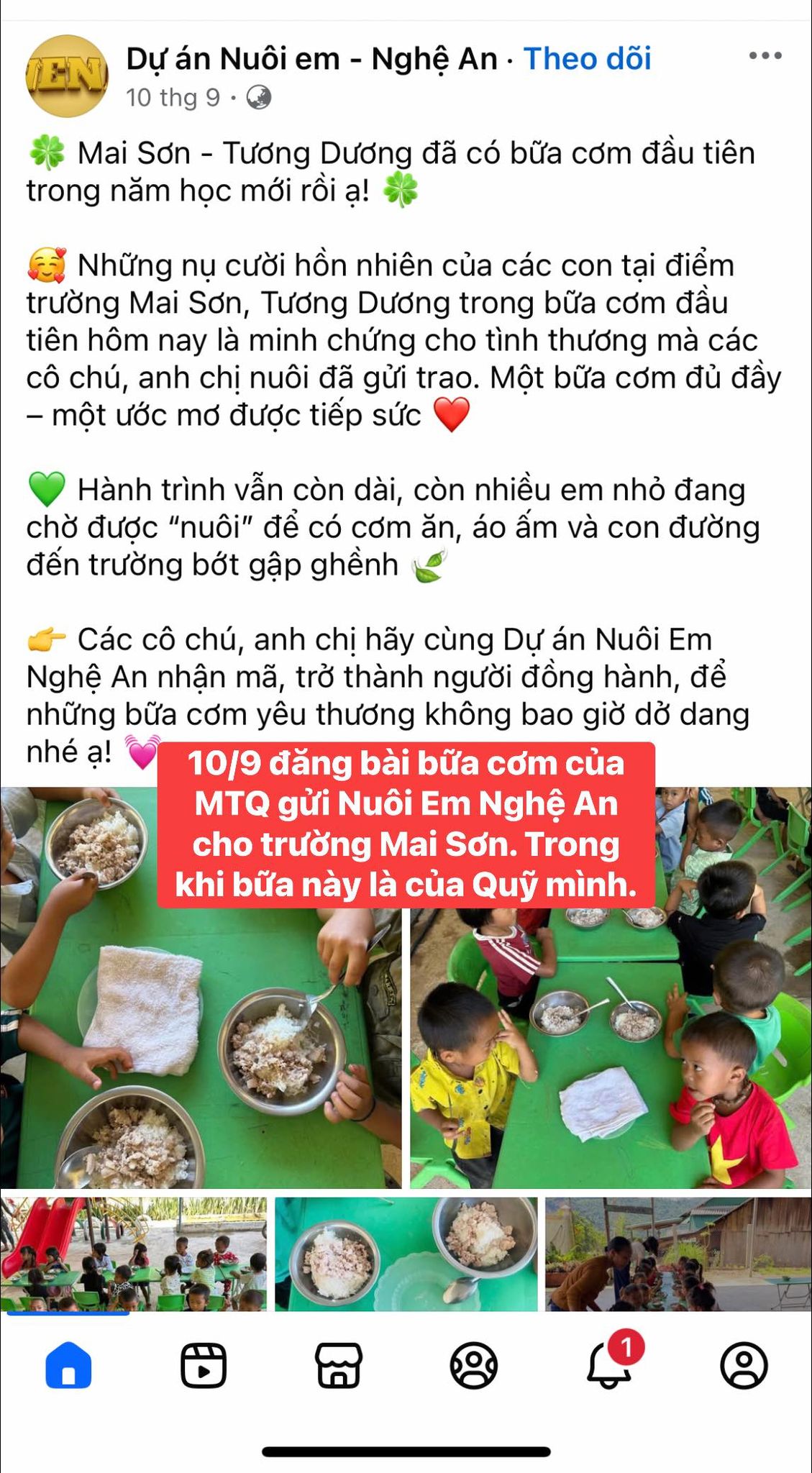 Những ngày gần đây, mạng xã hội xuất hiện bài đăng của Vân Nguyễn Violet, đại diện Quỹ Ủng Hộ Các Hoàn Cảnh Khó Khăn, phản ánh việc Dự án Nuôi Em Nghệ An sử dụng hình ảnh bữa ăn từ thiện do Quỹ này tài trợ để đăng tải lên trang fanpage và nhận là hoạt động của dự án.