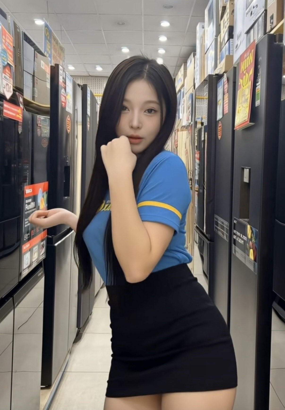 Trong clip, cô gái có gương mặt xinh đẹp, vóc dáng chuẩn, diện áo phông xanh và quần ngắn đen khiến người xem dễ liên tưởng ngay đến nhãn hàng có màu sắc nhận diện tương tự. Điều khiến đoạn clip "gây bão" là khoảnh khắc cô nhân viên này đột ngột thực hiện một động tác xoạc dọc cực kỳ dứt khoát và điệu nghệ bên cạnh chiếc tủ lạnh đang trưng bày.
