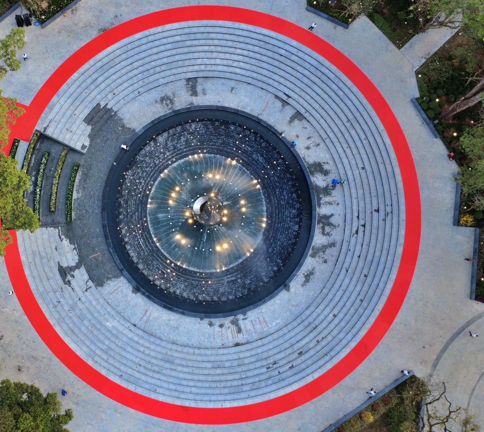 Công viên được xây dựng trên thửa đất hình tam giác và các nhà thiết kế đã khéo léo bo mềm các cạnh khu đất, đặt ở trung tâm công viên một quảng trường hình tròn rộng 1.800 m2. Ảnh: TTXVN phát