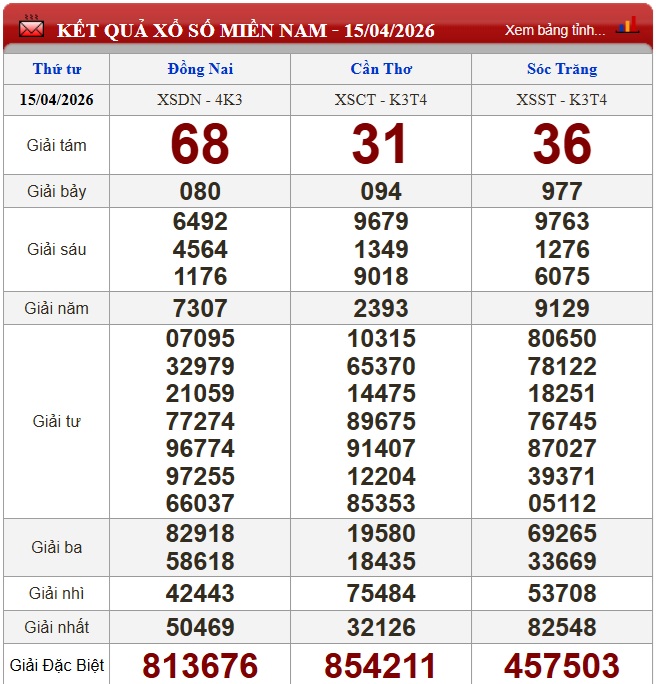 Kết quả xổ số miền Nam ngày 15/4/2026