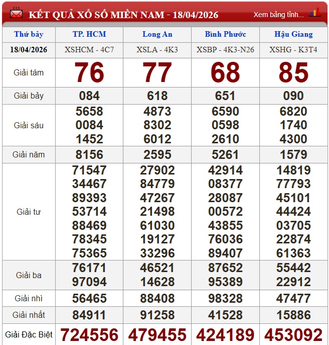 Kết quả xổ số miền Nam ngày 18/4/2026