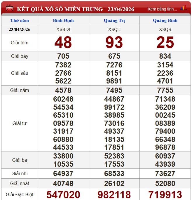Kết quả xổ số miền Trung ngày 23/4/2026