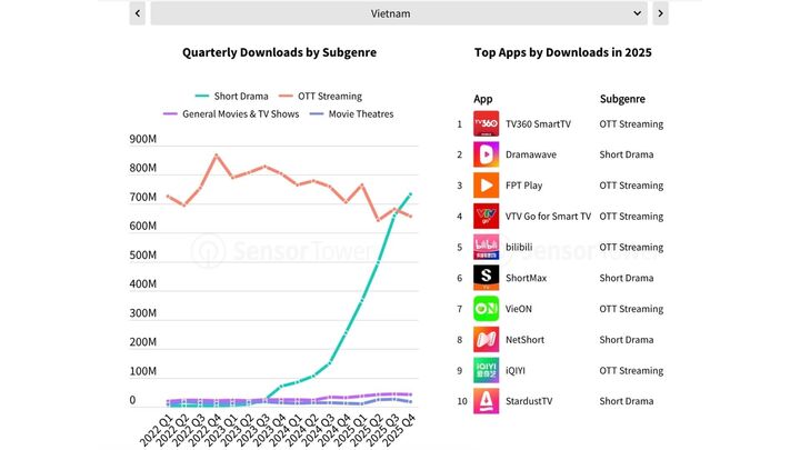 Các nền tảng phim ngắn ghi nhận sự tăng trưởng vượt bậc về lượt tải tại Việt Nam trong giai đoạn 2025 và đầu 2026.