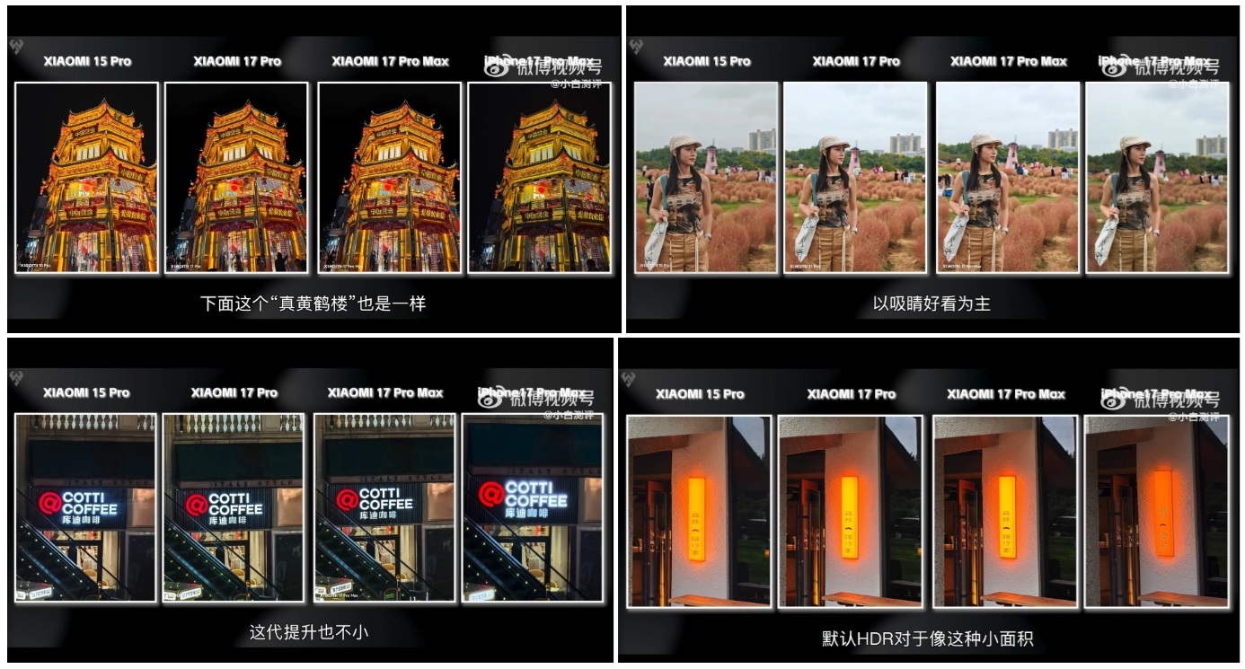Tại Trung Quốc, một số website nổi tiếng đã đánh giá camera của Xiaomi 17 Pro Max. Trên Weibo, loạt ảnh từ tài khoản Xiaobai Evaluation cho thấy thế mạnh của cảm biến Light Hunter 950L, tích hợp vào camera chính tiêu cự 23 mm.