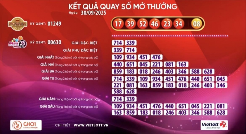 Xổ số Vietlott ngày 2/10/2025 - Cập nhật Kết quả Vietlott 2/10/2025 giải Vietlott Power 6/55 nhanh chóng và chính xác nhất tới quý độc giả.