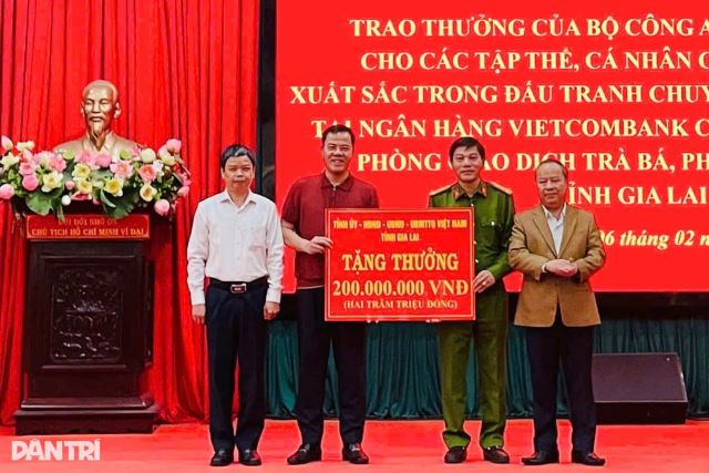 Theo báo Dân trí, Bộ Công an vừa thực hiện trao thưởng cho 5 công dân có thành tích xuất sắc trong việc hỗ trợ phá vụ án cướp ngân hàng tại Gia Lai. Mỗi cá nhân nhận mức thưởng 5 triệu đồng vì đã cung cấp những nguồn tin giá trị, trực tiếp giúp lực lượng chức năng bắt giữ thành công các đối tượng gây án vào chiều 19/1.