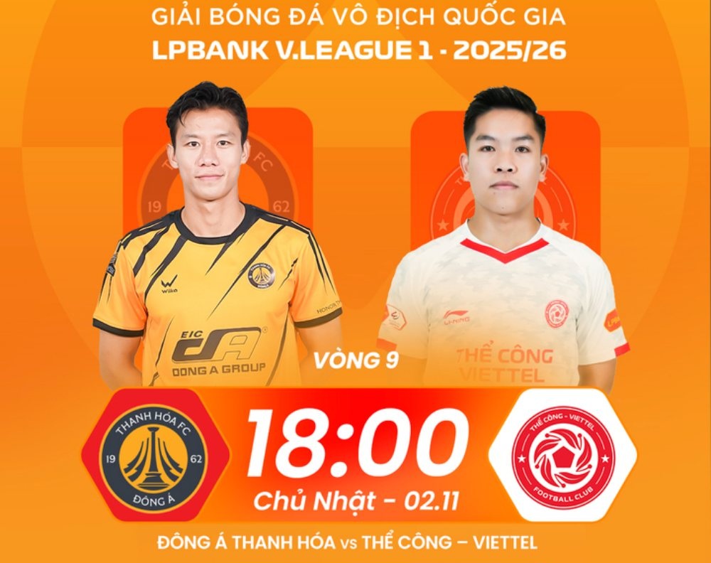Cập nhật thông tin lịch thi đấu, kênh trực tiếp bóng đá Thanh Hóa đấu với Thể Công, vòng 8 giải V.League 2025-2026.
