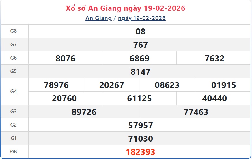 Kết quả xổ số An Giang ngày 19/2/2026