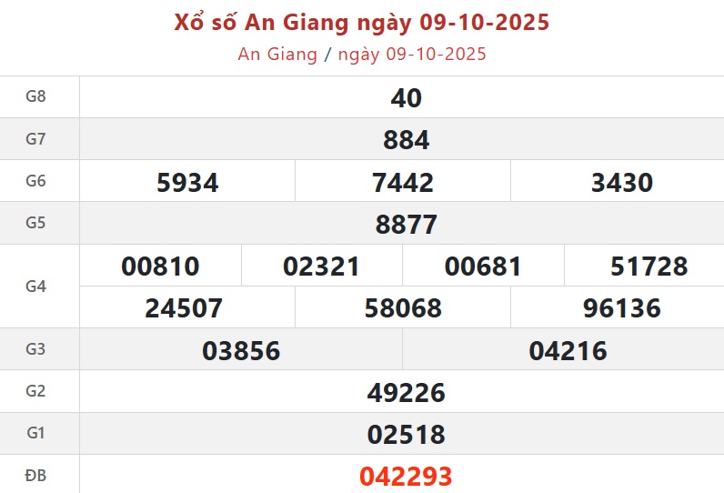 Hãy theo dõi kết quả xổ số An Giang hôm nay 9/10/2025 để cập nhật kết quả sớm nhất.