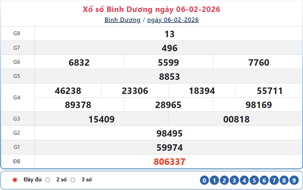 Trực tiếp Kết quả xổ số Bình Dương hôm nay - Kết quả XSBD 13/2 - XSBD hôm nay Thứ Sáu ngày 13/2/2026 - Xổ số Bình Dương hôm nay thứ Sáu ngày 13/2/2026