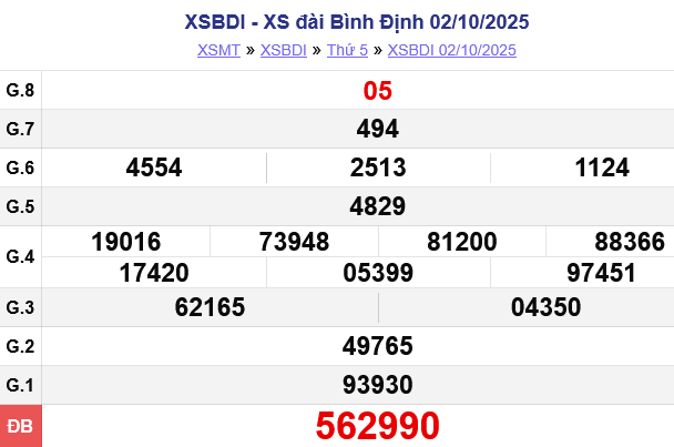 - XSBDI 2/10, Kết quả xổ số bình định ngày 2/10/2025
