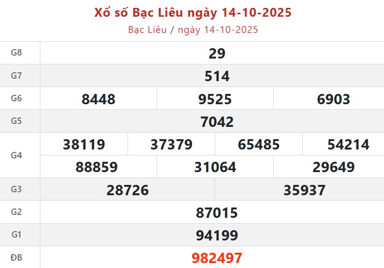 Trực tiếp Kết quả xổ số Bạc Liêu hôm nay - Kết quả XSBL 14/10 - XSBL hôm nay Thứ Ba ngày 14/10/2025