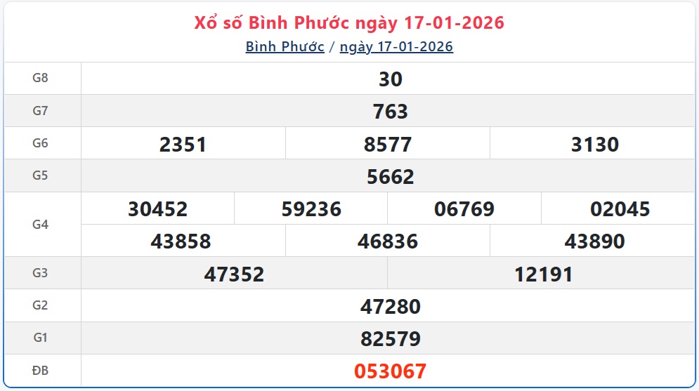 - XSBP 17/1, kết quả xổ số Bình Phước ngày 17/1/2026