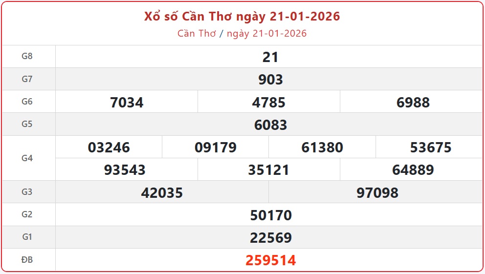 Kết quả xổ số Cần Thơ ngày 21/1/2026