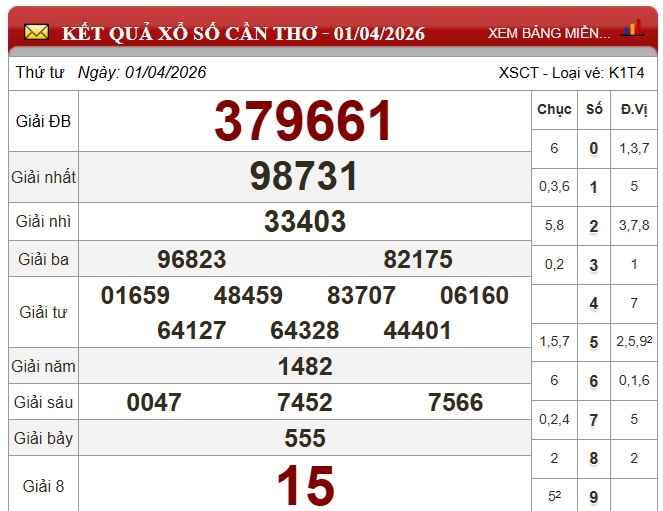 Theo dõi kết quả xổ số Cần Thơ hôm nay 8/4/2026 nhanh chóng và chính xác nhất.