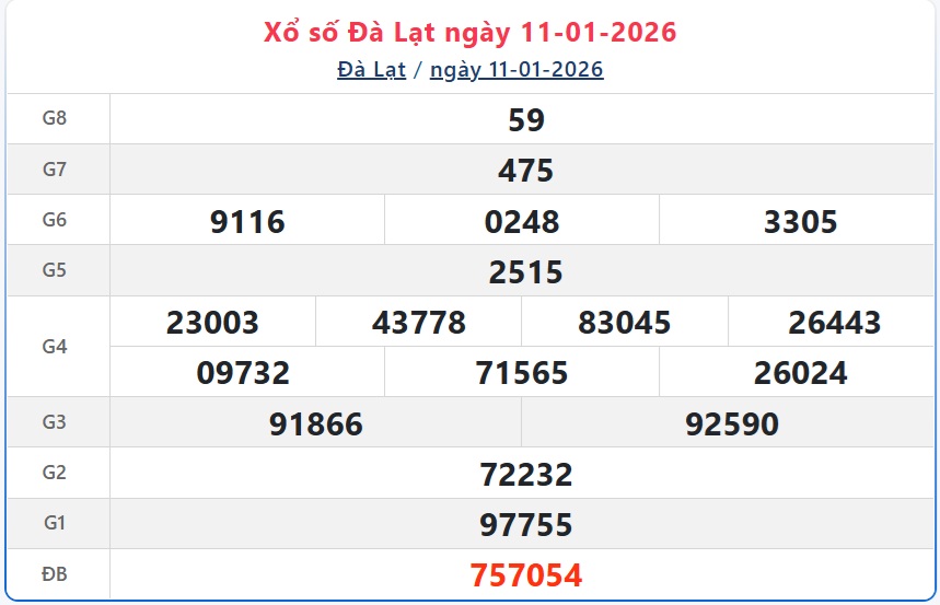 - XSDL 11/1, kết quả xổ số Đà Lạt ngày 11/1/2026