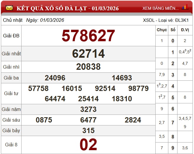 - XSDL 1/3, kết quả xổ số Đà Lạt ngày 1/3/2026