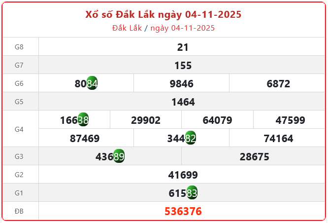 Theo dõi kết quả xổ số Đắk lắk hôm nay 11/11/2025 nhanh chóng và chính xác nhất để không bỏ lỡ thời gian nhận thưởng.