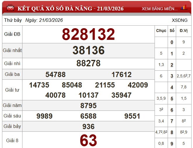 Kết quả xổ số Đà Nẵng ngày 21/3/2026