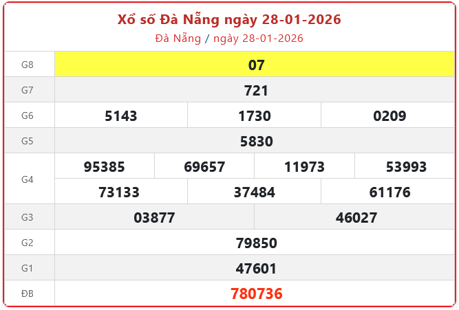 Theo dõi ngay kết quả xổ số Đà Nẵng hôm nay 28/1/2026 nhanh chóng và chính xác nhất.