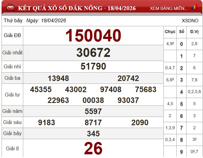 - XSDNO 18/4, Kết quả xổ số Đắk Nông ngày 18/4/2026