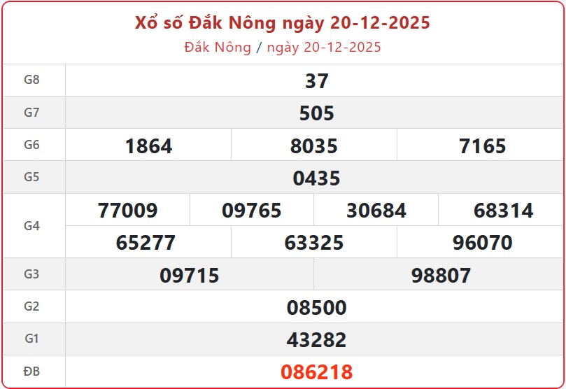 - XSDNO 20/12, Kết quả xổ số Đắk Nông ngày 20/12/2025