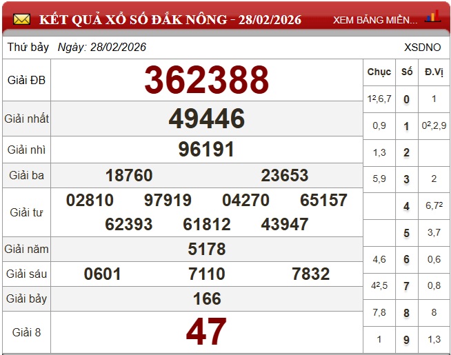 - XSDNO 28/2, Kết quả xổ số Đắk Nông ngày 28/2/2026
