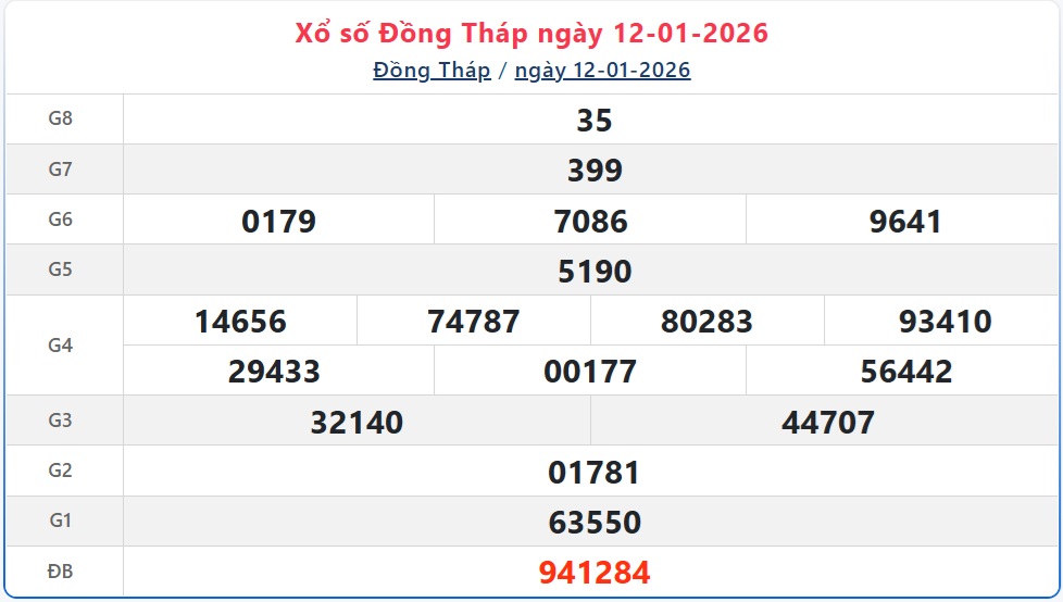 Kết quả xổ số Đồng Tháp Thứ Hai ngày 12/1/2026