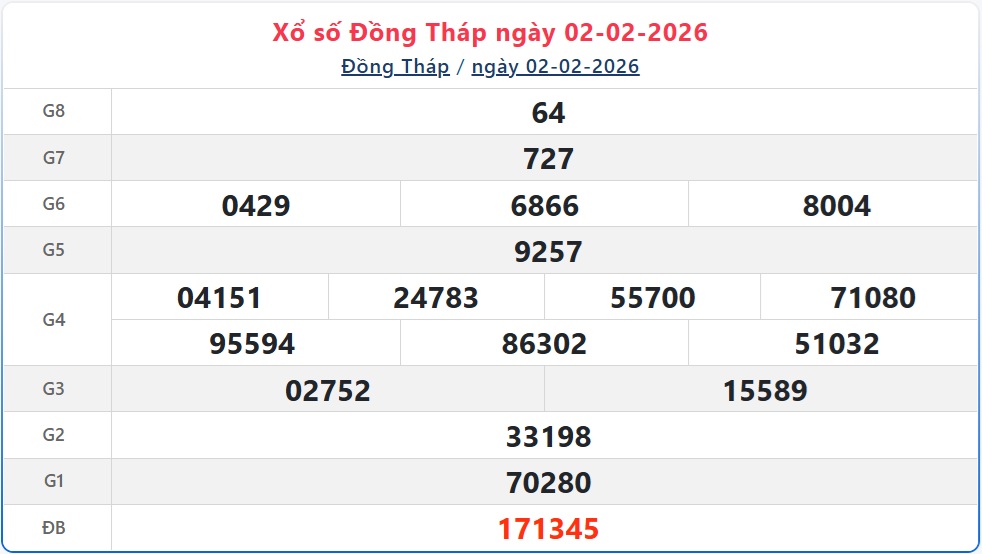 Kết quả xổ số Đồng Tháp Thứ Hai ngày 2/2/2026