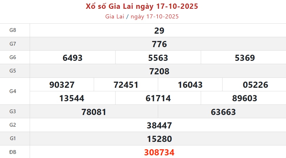 - XSGL 17/10, Kết quả xổ số Gia Lai ngày 17/10/2025