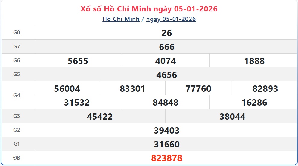 Kết quả xổ số TP.HCM ngày 5/1/2026