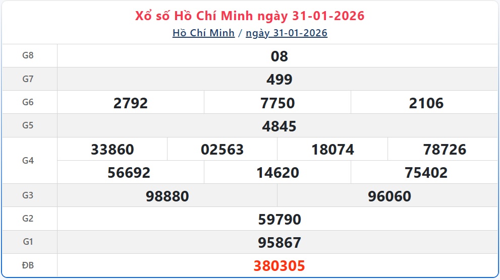 Kết quả xổ số TP.HCM ngày 31/1/2026