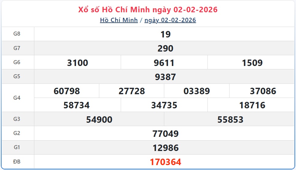 Kết quả xổ số TP.HCM ngày 2/2/2026