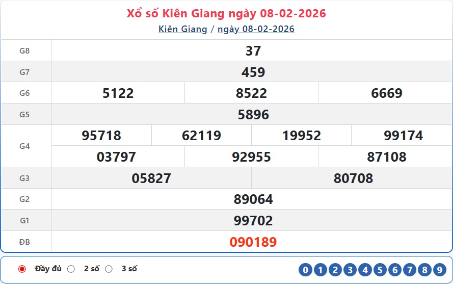 - XSKG 8/2, kết quả xổ số Kiên Giang ngày 8/2/2026
