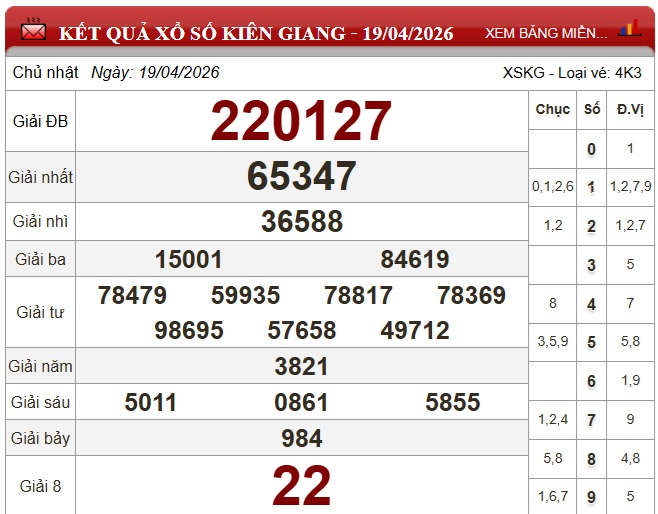 - XSKG 19/4, kết quả xổ số Kiên Giang ngày 19/4/2026