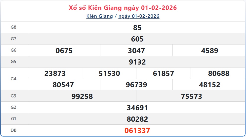 Theo dõi kết quả xổ số Kiên Giang hôm nay 8/2/2026 nhanh chóng và chính xác nhất để không bỏ lỡ thời gian nhận thưởng.