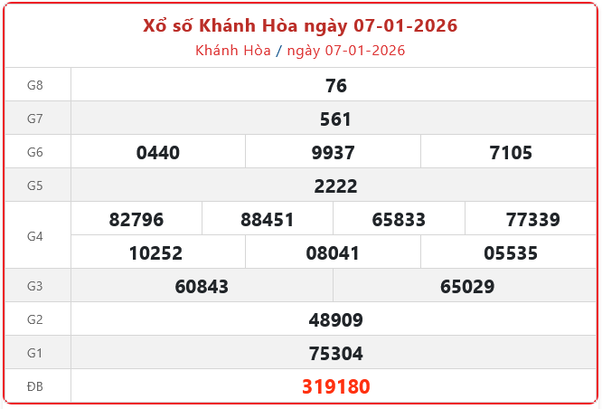 XSKH 7/1, kết quả xổ số Khánh Hòa ngày 7/1/2026