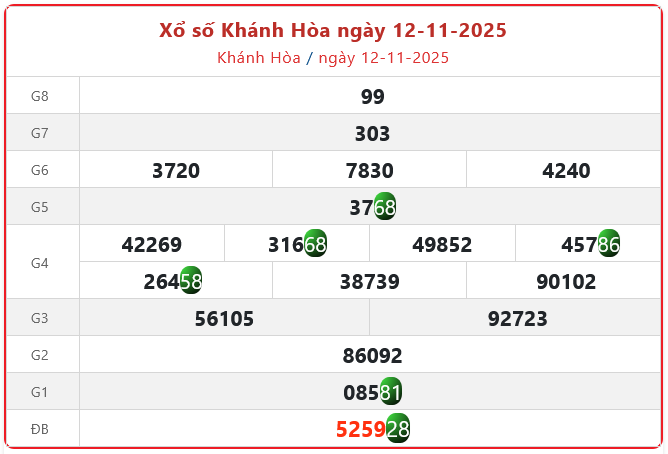 Theo dõi kết quả xổ số Khánh Hòa hôm nay 12/11/2025 trên LDG để cập nhật kết quả nhanh và chính xác nhất.